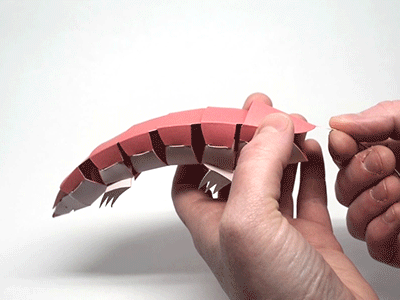 Paper armadillo that can curl up by pushing on its tail.